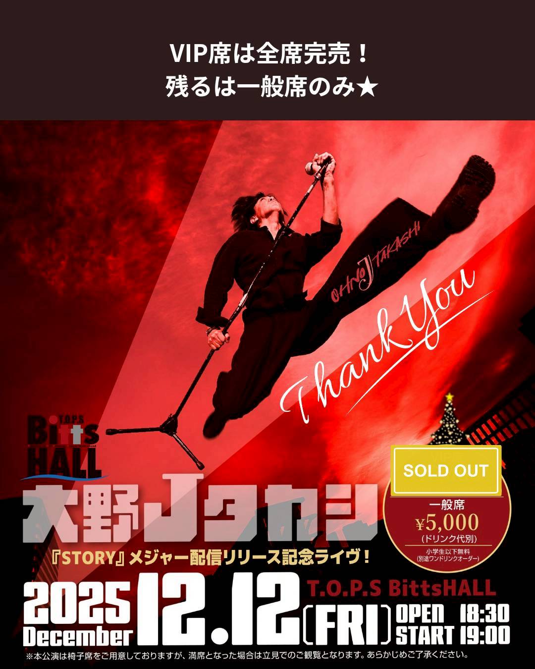 ☆【VIP席 完売御礼!!】 大野𝐉タカシ『STORY』 メジャー配信リリース記念ライヴ☆